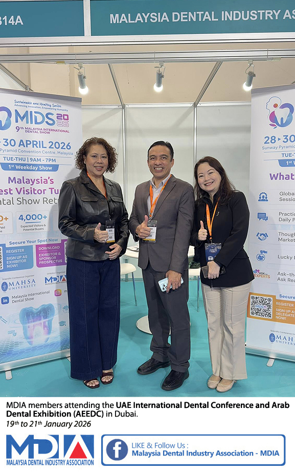 MDIA, led by our Secretary General En. Mior Faizrul, proudly attended AEEDC under our barter agreement—a strategic move to promote MIDS 2026, Malaysia’s premier dental showcase and the dental show with the largest visitor turnout in Malaysia.
